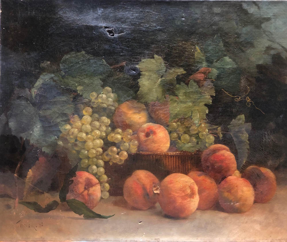 Réstauratation ancienne toile nature morte Louis Adolphe Tessier 65x54